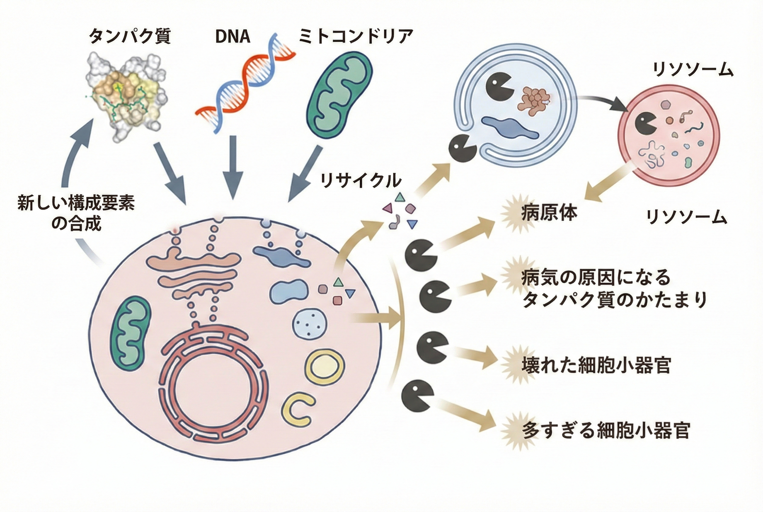 細胞内の古くなった物質を回収してリサイクルしたり、
