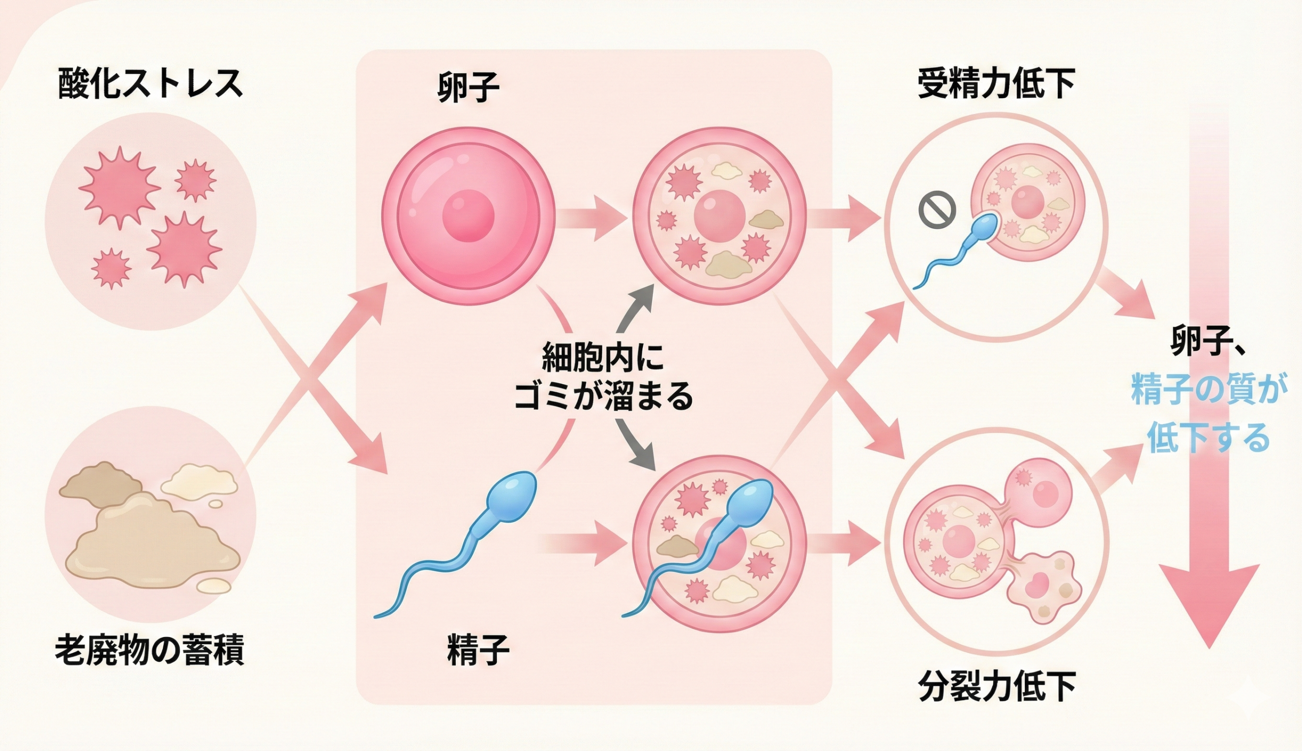 細胞内にゴミが溜まると、受精力や分裂力が下がります。